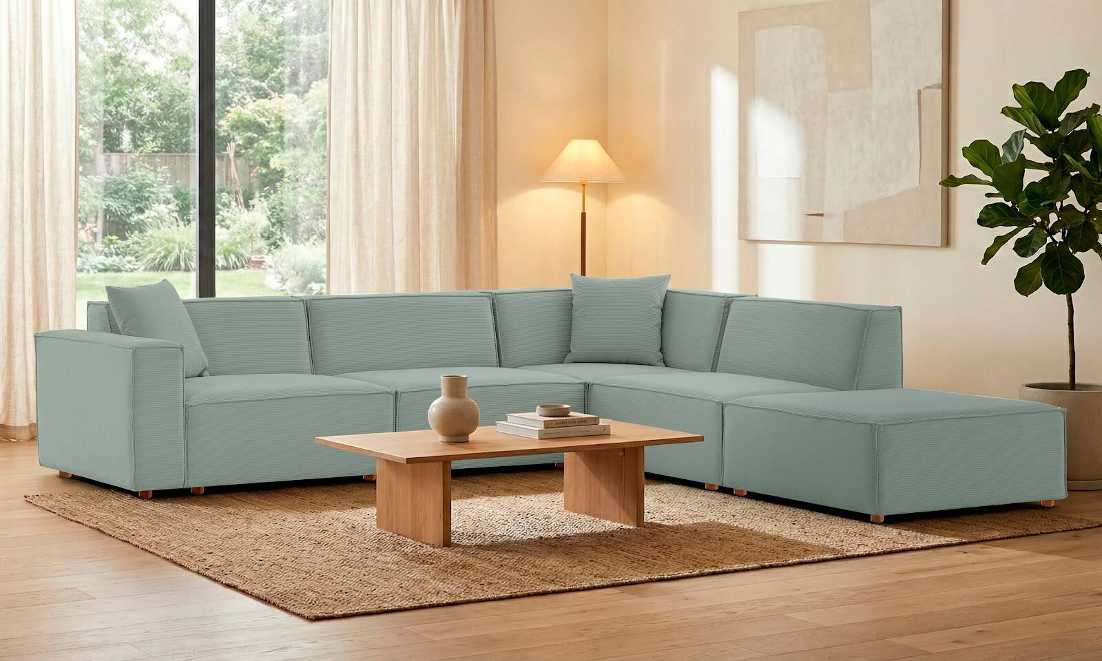 Asana 3 Tekli Köşe Puf Fitilli Kadife Pastel Mavi - 6