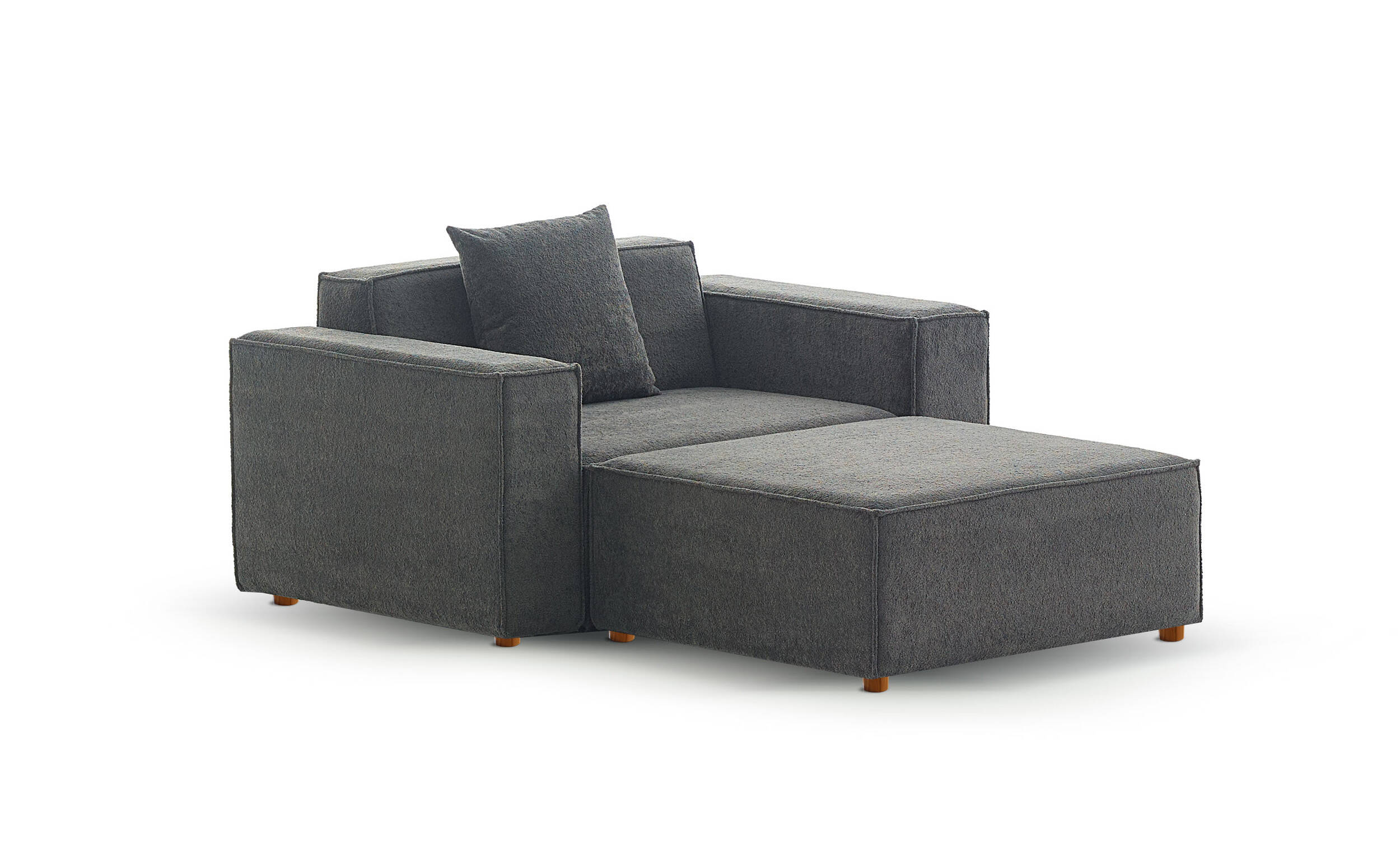 Asana Uzanmalı Tekli ve Puf - Bukle Antrasit