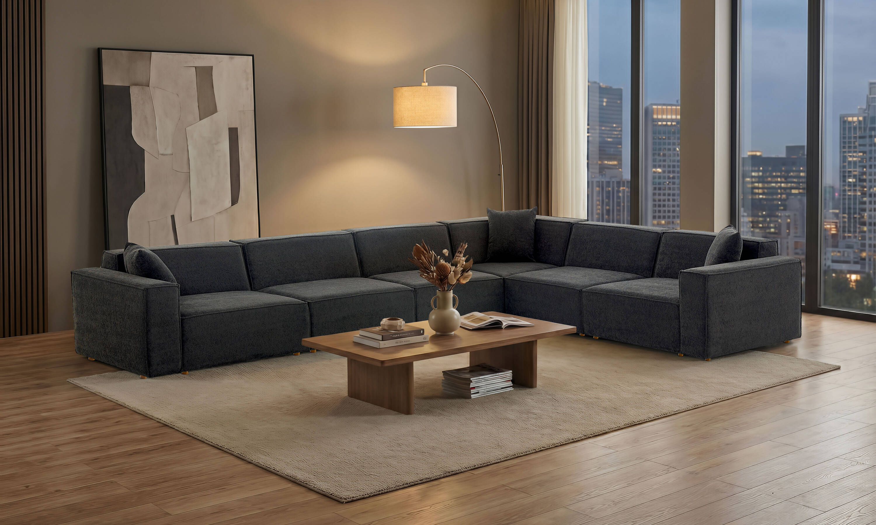 Asana L Köşe 5 Tekli Köşe - Bukle Antrasit