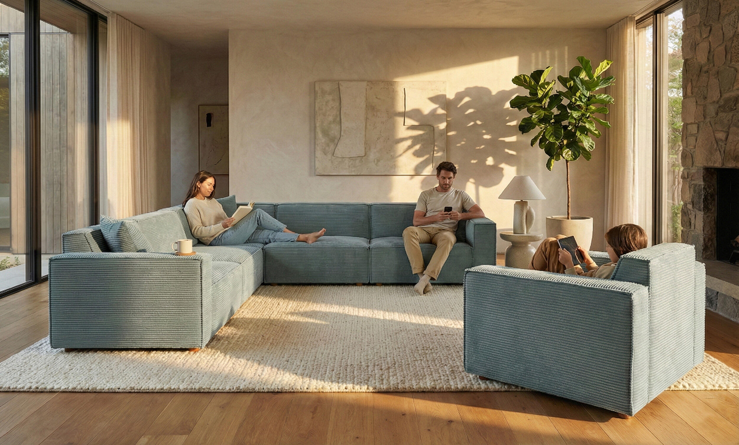 Kıvrımlı iplik yapısıyla ikonik bir görünüm sunan bu kumaş, 400 gr/m² ağırlığıyla hem tok hem de yumuşak bir dokuya sahiptir. 50.000 devir aşınma testi ve 600N kopma mukavemeti ile en zorlu ev koşullarına meydan okur.