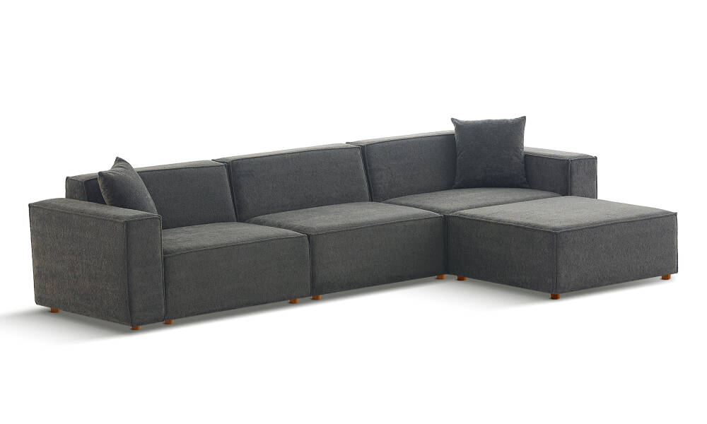 Kıvrımlı iplik yapısıyla ikonik bir görünüm sunan bu kumaş, 400 gr/m² ağırlığıyla hem tok hem de yumuşak bir dokuya sahiptir. 50.000 devir aşınma testi ve 600N kopma mukavemeti ile en zorlu ev koşullarına meydan okur.