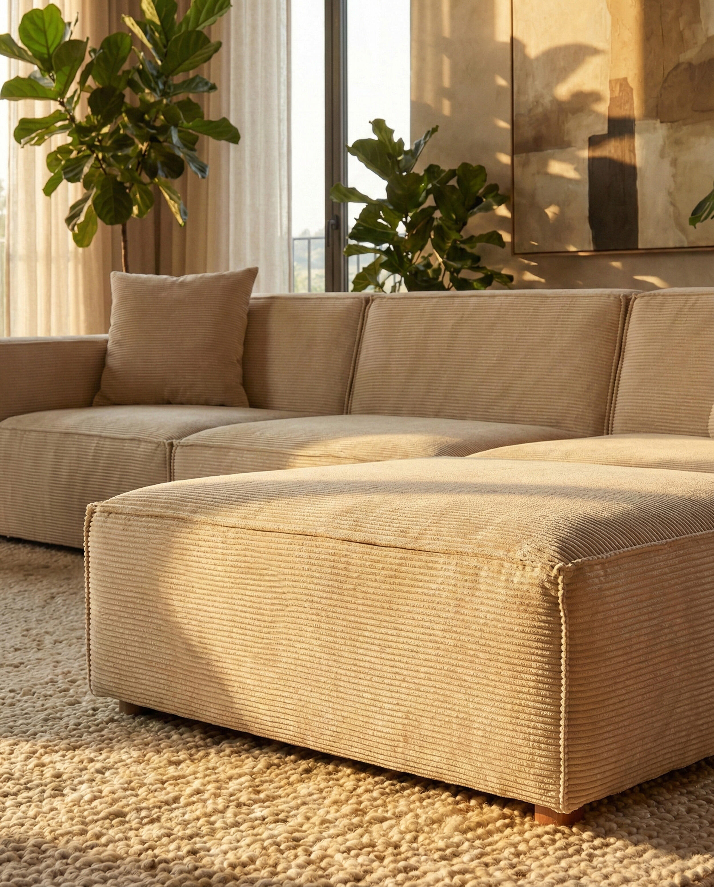 Kıvrımlı iplik yapısıyla ikonik bir görünüm sunan bu kumaş, 400 gr/m² ağırlığıyla hem tok hem de yumuşak bir dokuya sahiptir. 50.000 devir aşınma testi ve 600N kopma mukavemeti ile en zorlu ev koşullarına meydan okur.