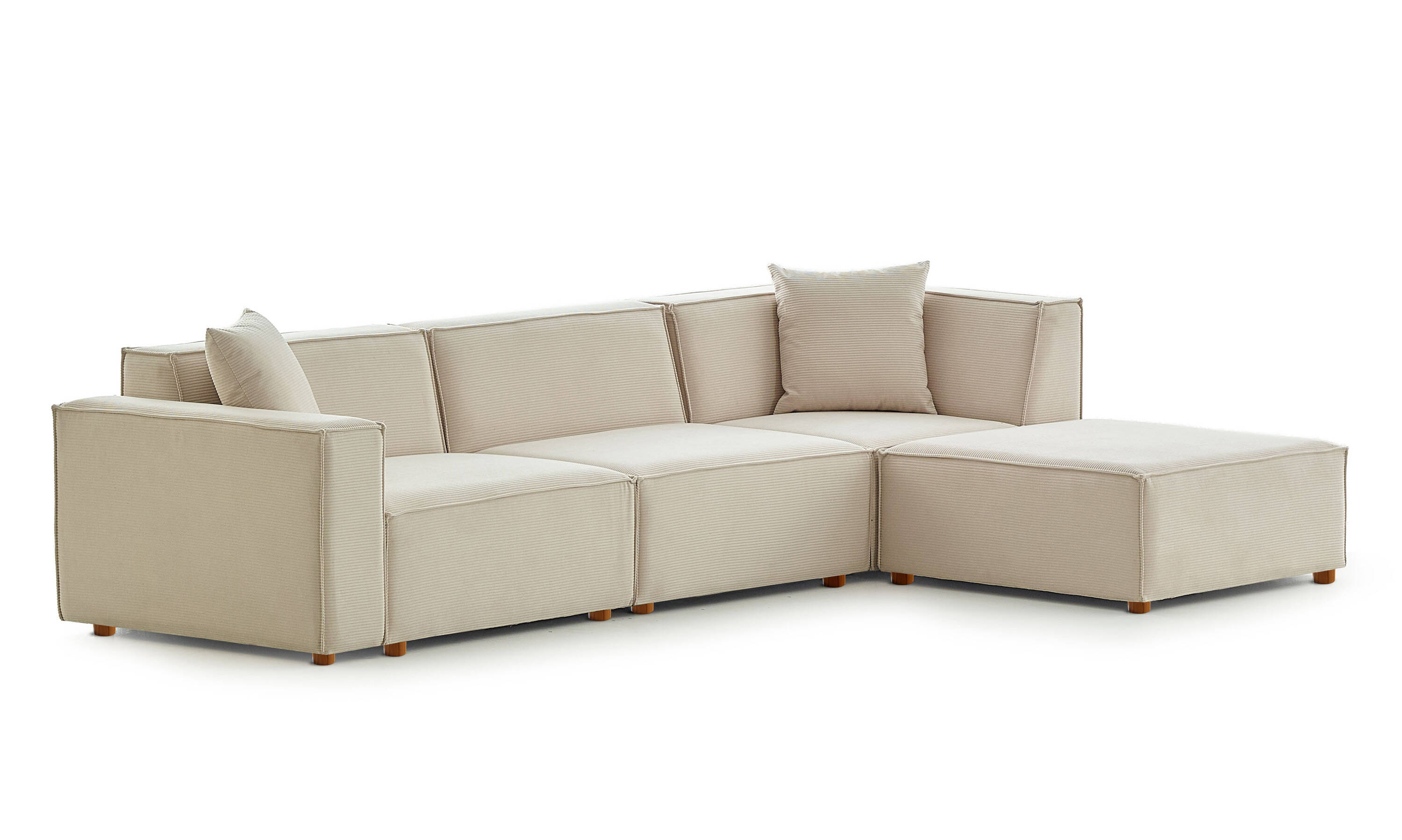 Asana Üç Tekli ve Puf Takım Ürünü Fitilli Kadife