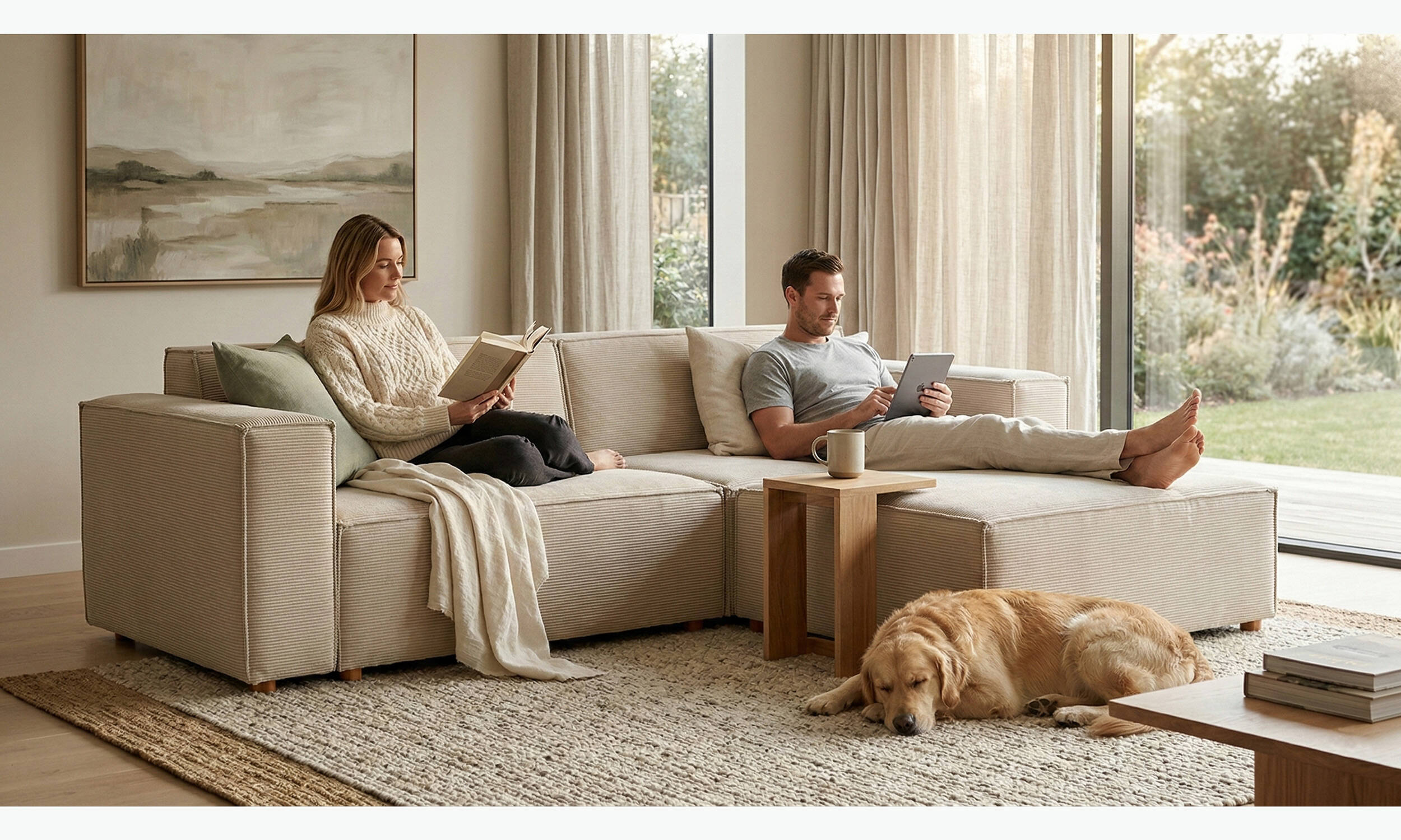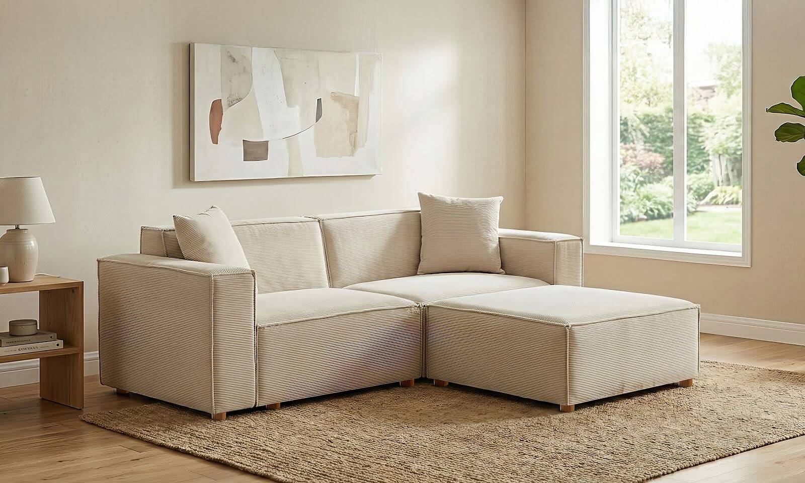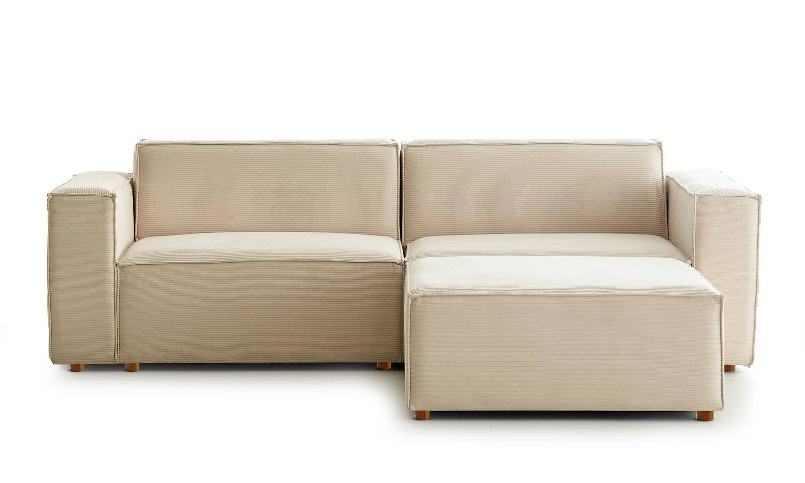 Asana Üçlü Puf Fitilli Kadife Krem - 1