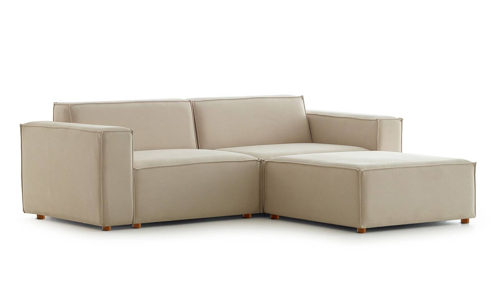 Asana Üçlü Puf Fitilli Kadife Krem - 3