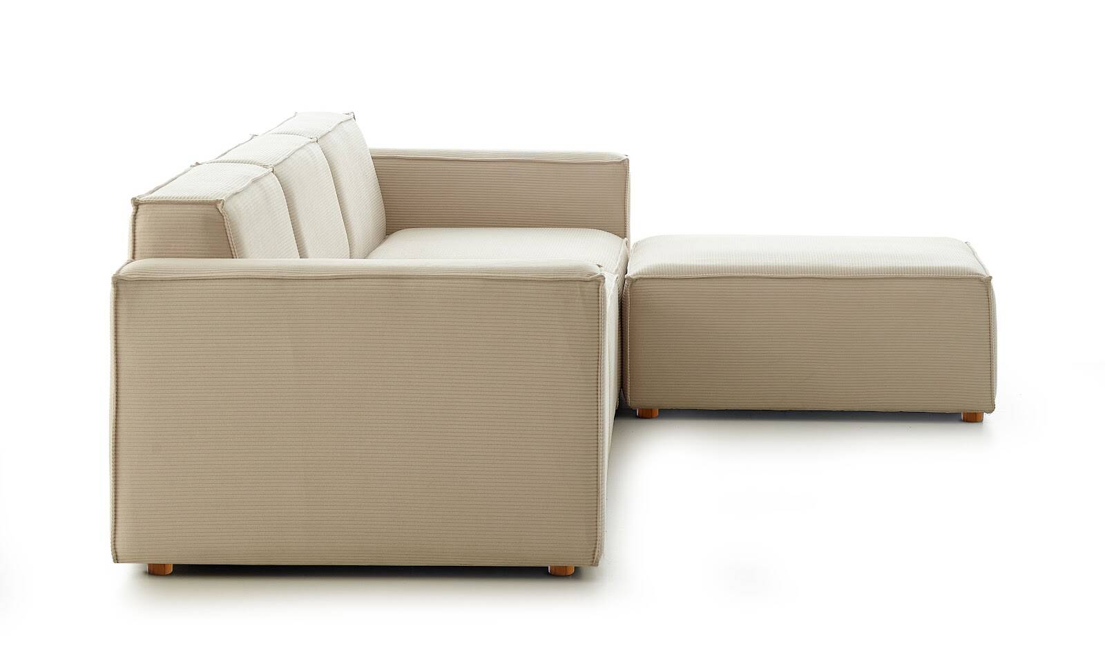 Asana Üçlü Puf Fitilli Kadife Krem - 4