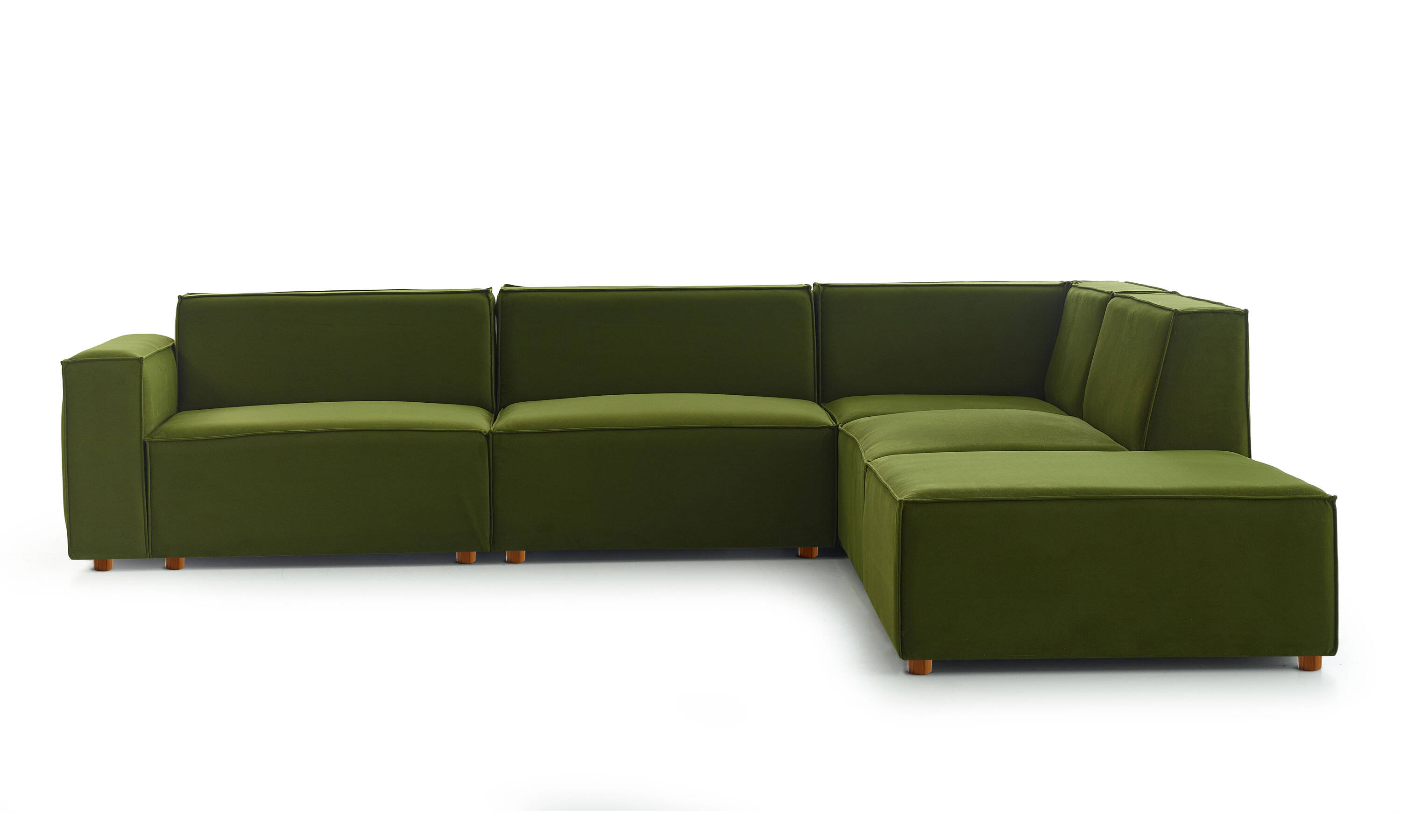 Asana Uzanmalı L Köşe 3 Tekli Köşe ve Puf - Kadife Yeşil
