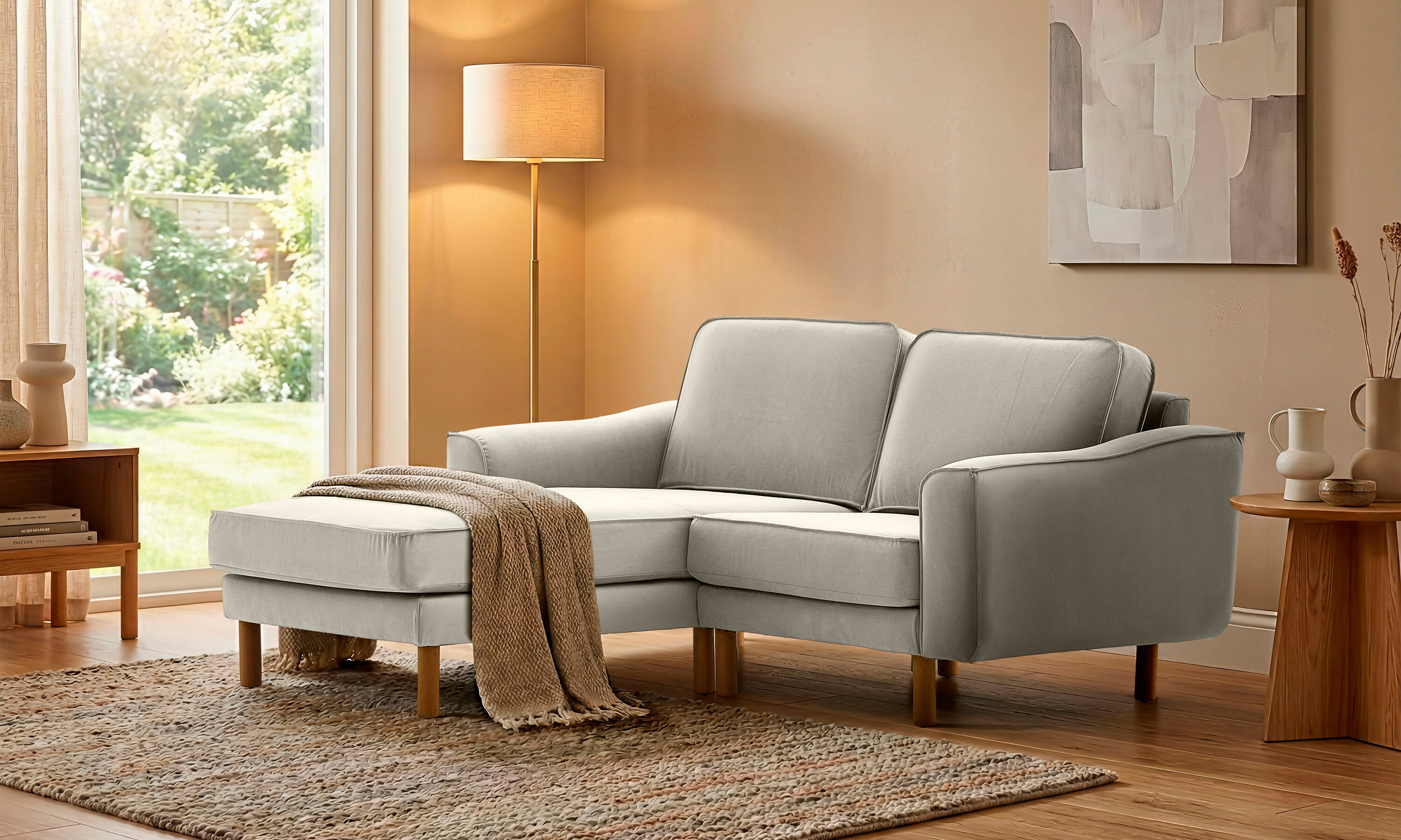 Lotus Uzanmalı L Köşe İkili Bukle Bukle3 Silindir Ayak Açık Ceviz