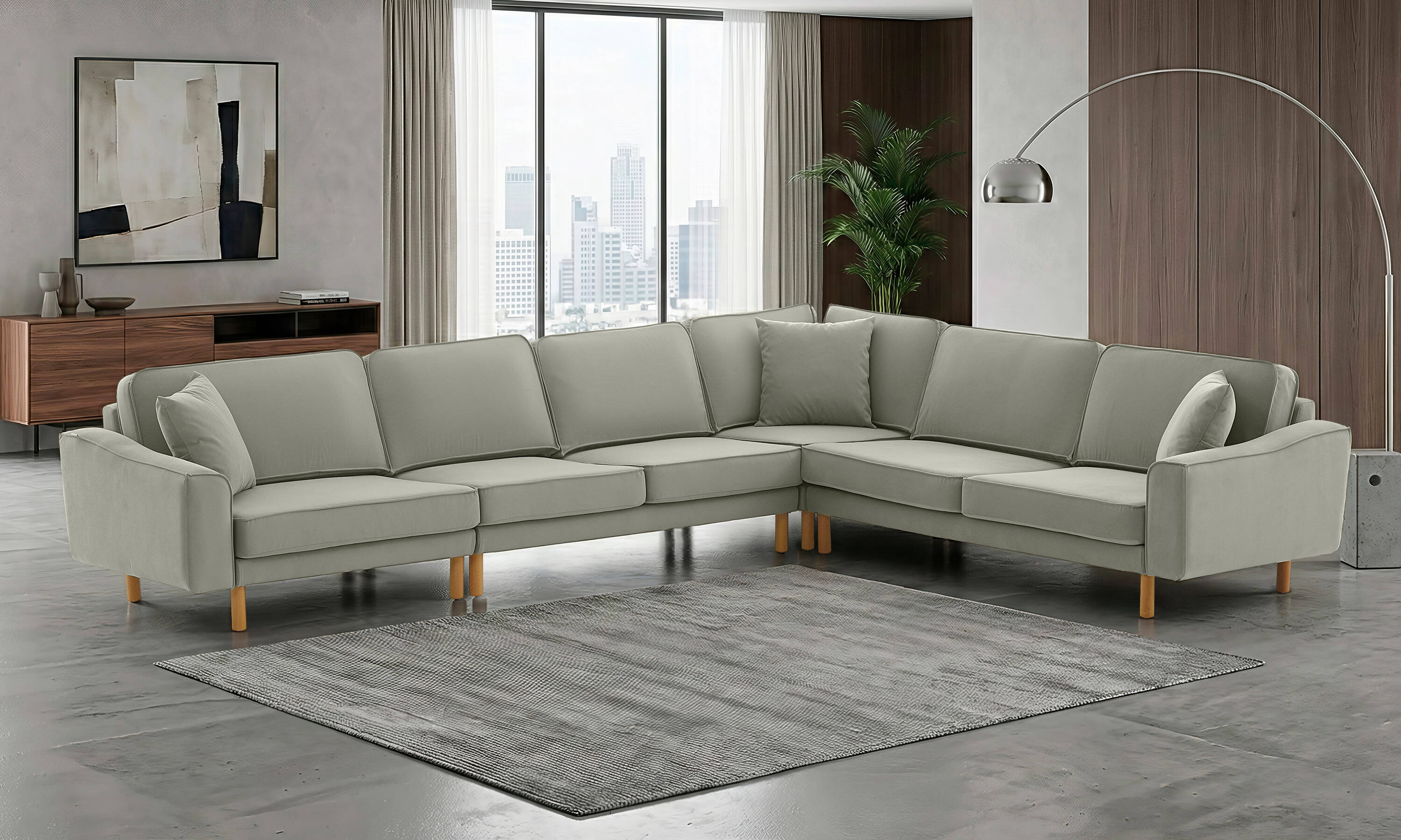 Lotus 1 Uzanmalı L Köşe Üçlü Bukle Bukle5 Silindir Ayak Açık Ceviz
