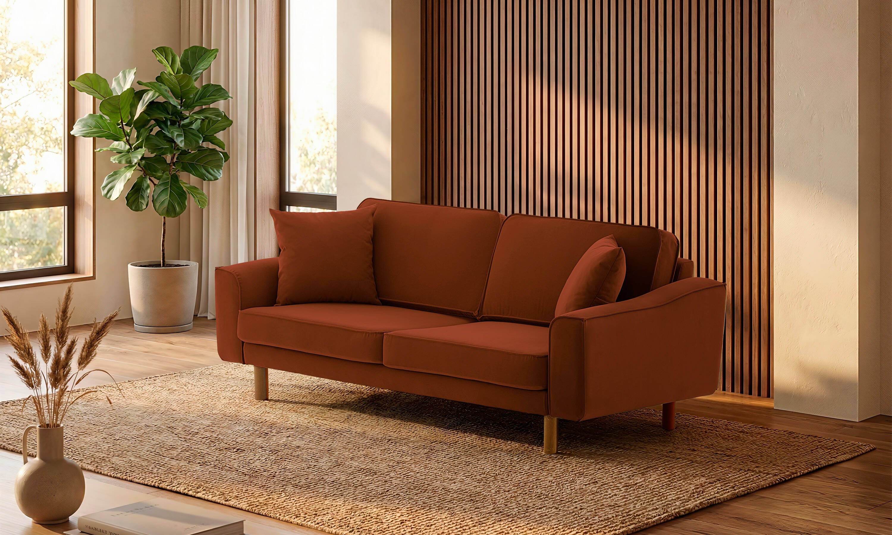 Lotus L Köşe Tekli Fitilli Kadife Bukle1 Silindir Ayak Açık Ceviz