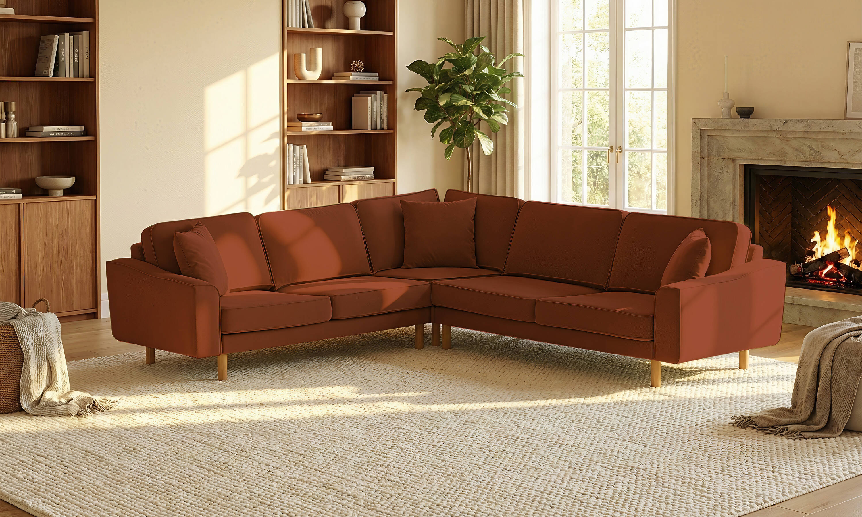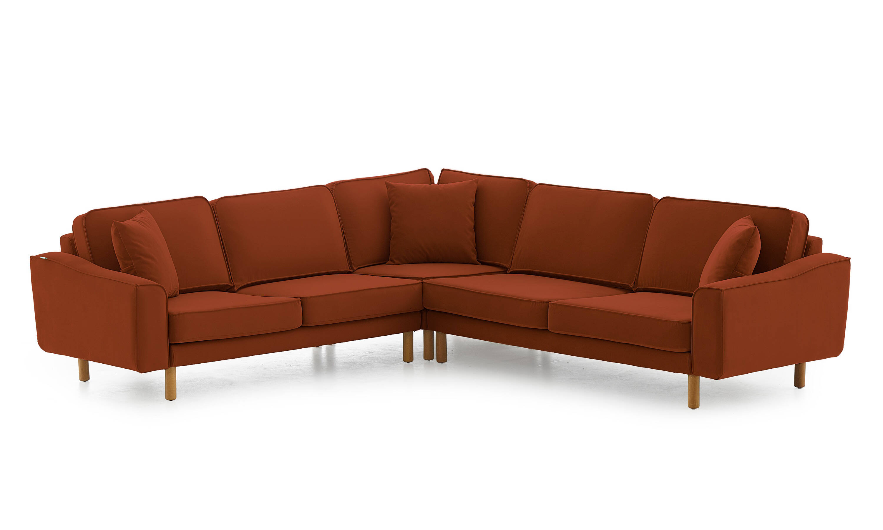 Lotus L Köşe Loveseat Fitilli Kadife Bukle4 Silindir Ayak Açık Ceviz