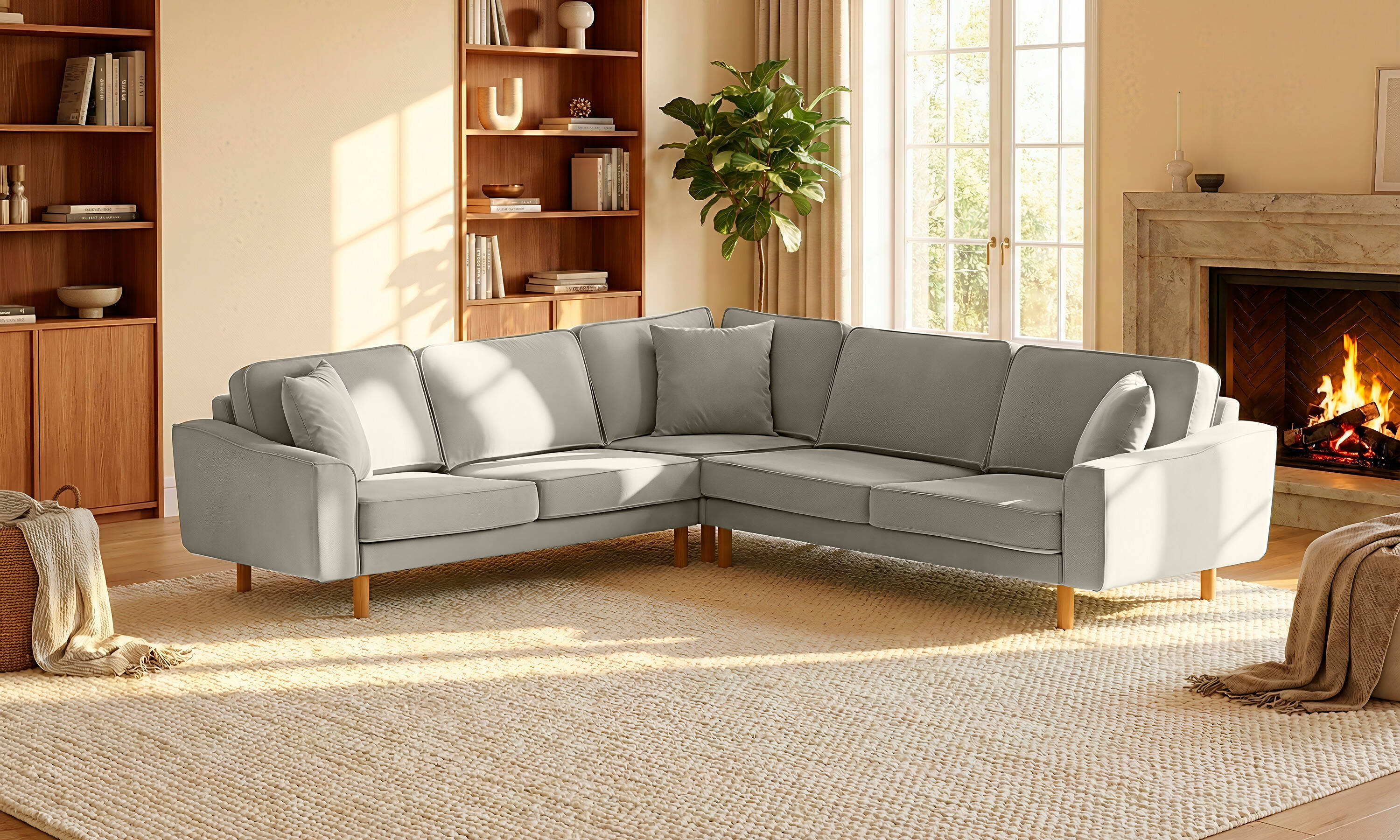 Lotus Uzanmalı L Köşe Loveseat Fitilli Kadife Bukle4 Silindir Ayak Açık Ceviz