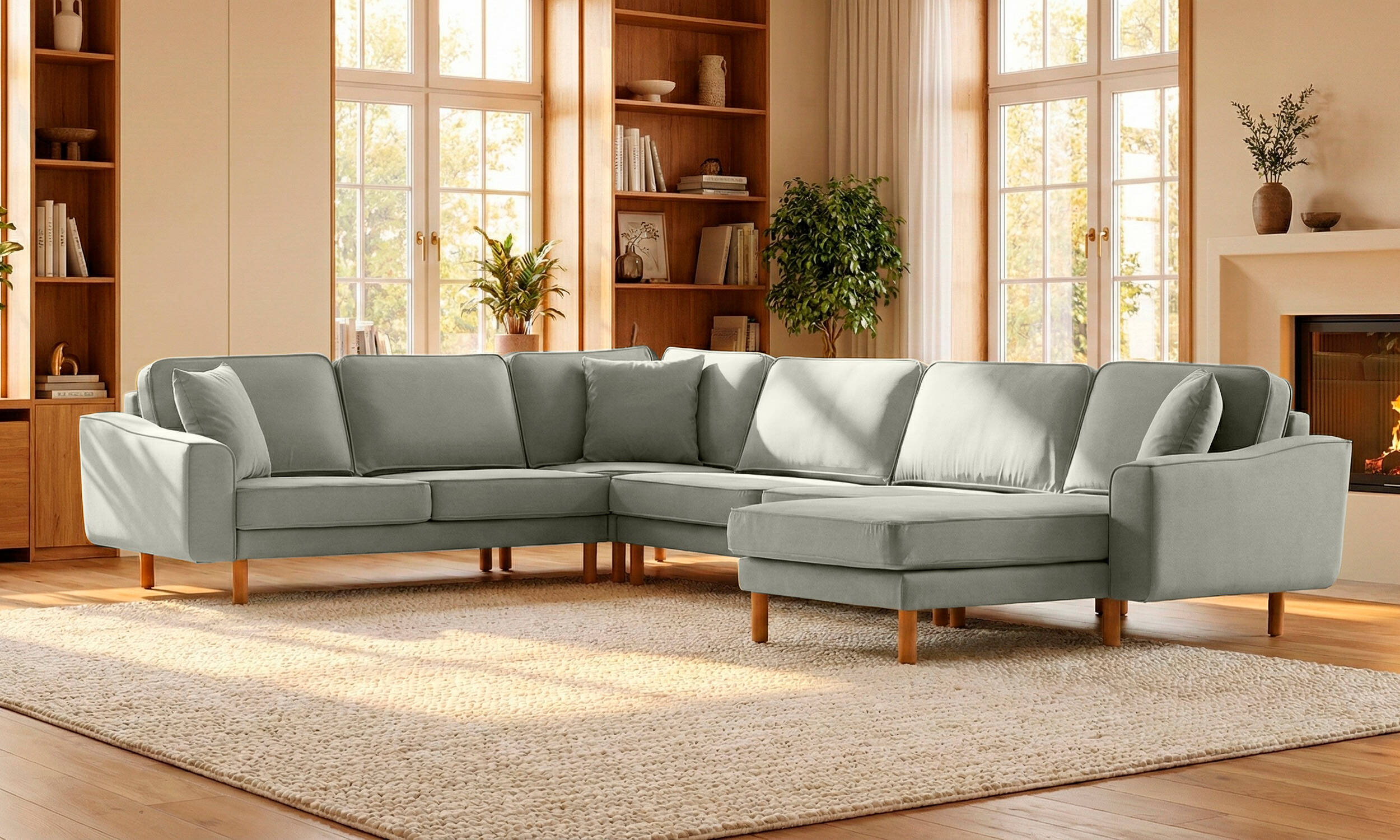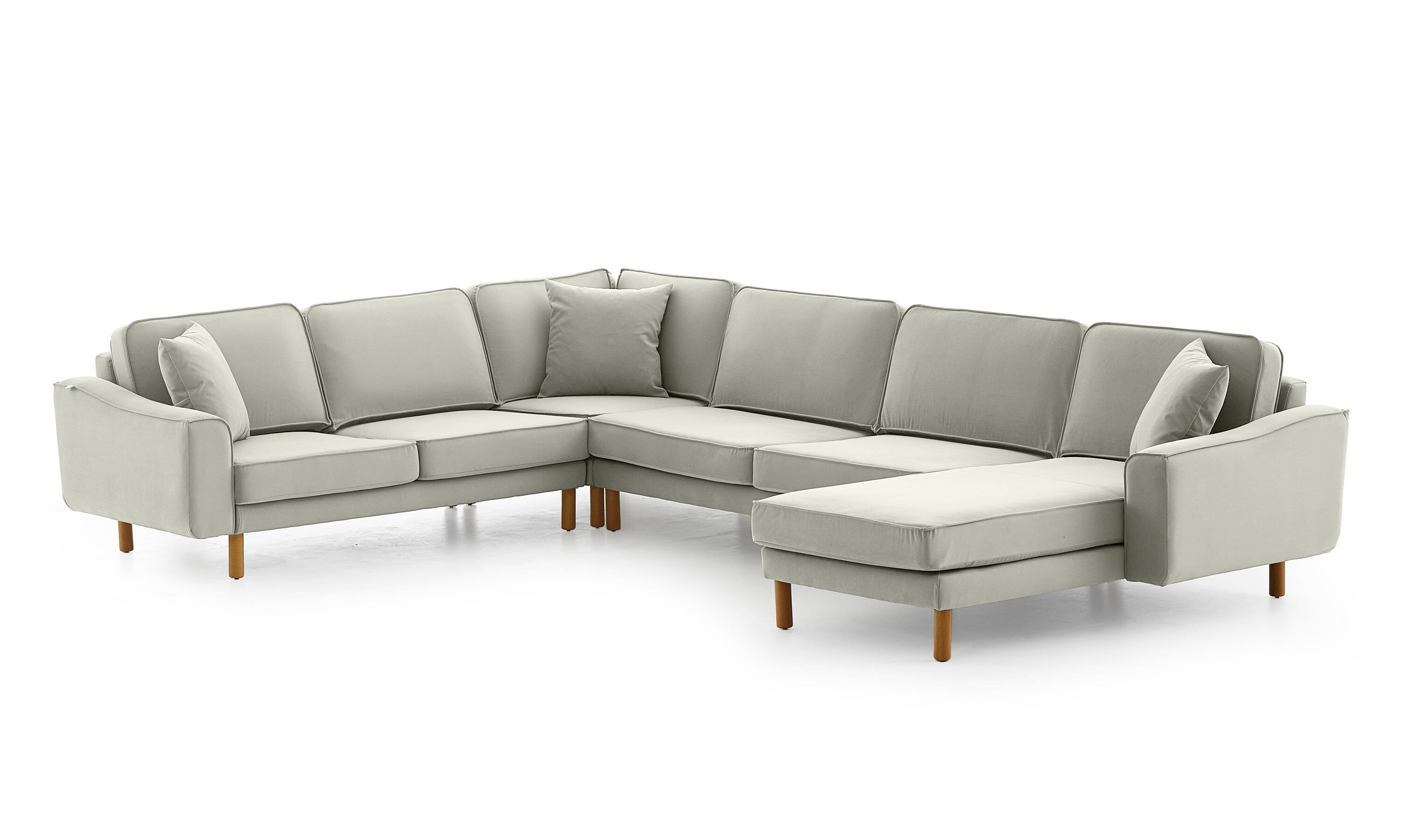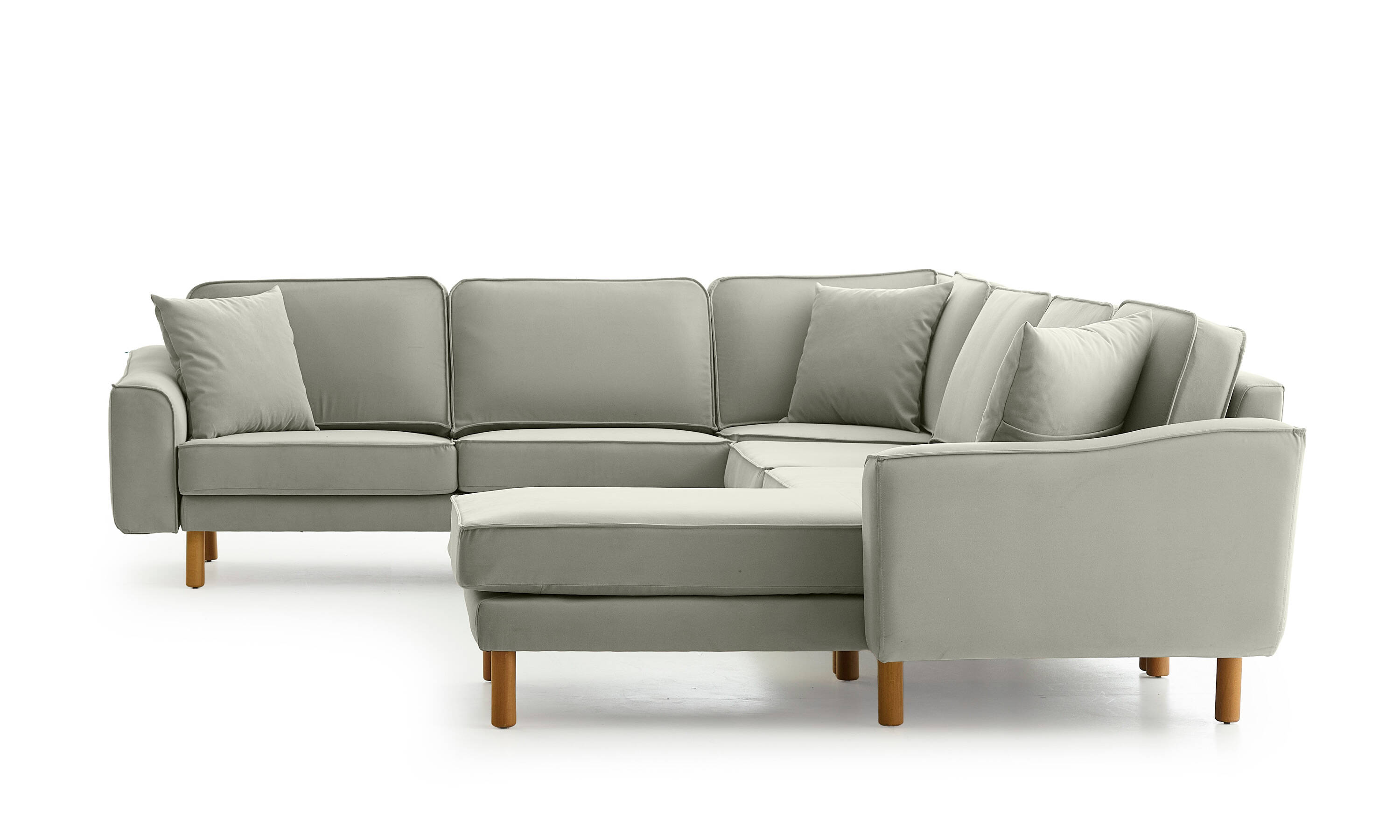 Lotus Uzanmalı L Köşe Loveseat Bukle Bukle5 Silindir Ayak Açık Ceviz