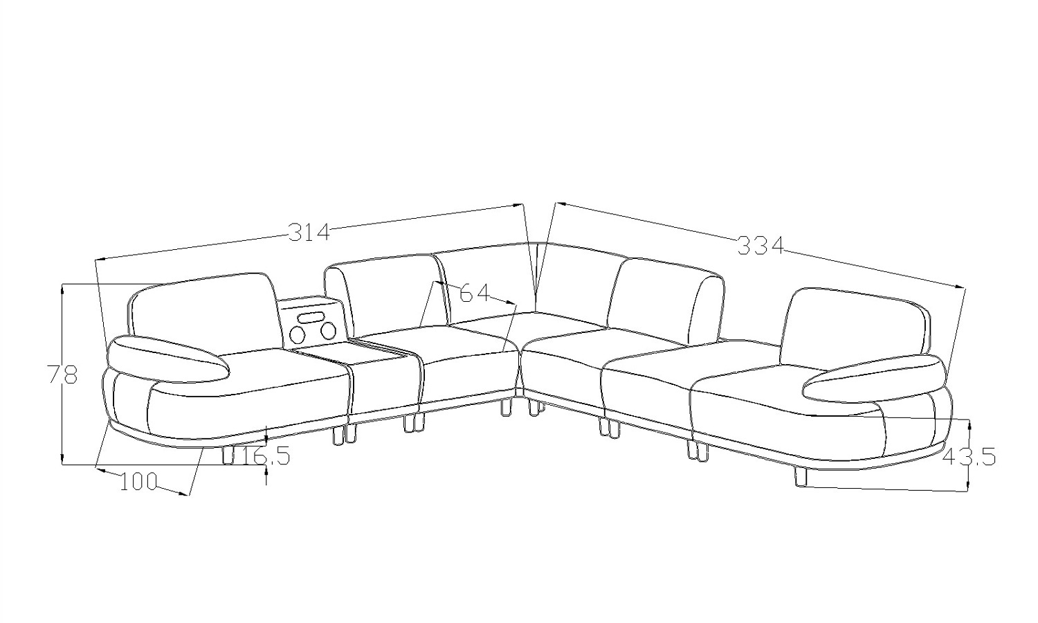 314 × 334 × D100 × Y78 cm